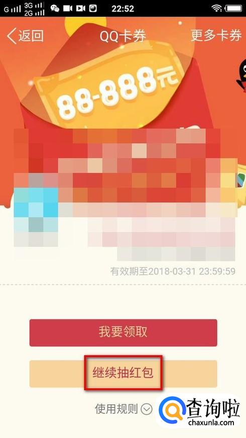 如果抽中的是优惠卷,则在消费的时候才能抵扣,点击【继续抽红包】,进行下一次抽奖。