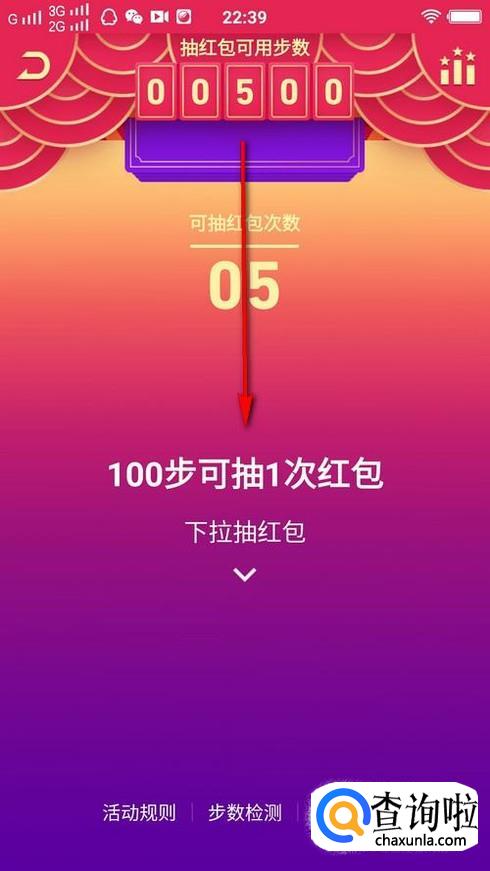 关掉提示后,页面就会弹出抽奖界面,按住最上面的红包往下拉。