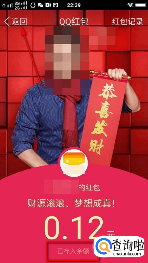 点击【开】字后,我们就可以看到自己的中奖内容了,如果是现金红包就会直接存入余额,点击【返回】继续抽奖,总共可以抽5次。