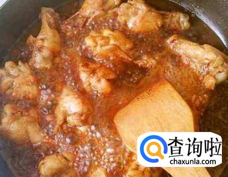 锅中再补些油,将葱、姜、蒜、大料、花椒放入锅中,炝出香味。将煎好的小鸡腿放入锅中,倒入适量的酱油、料酒、白糖、盐,用铲子翻炒均匀,再加入适量的水,没过小鸡腿,然后盖上锅盖。