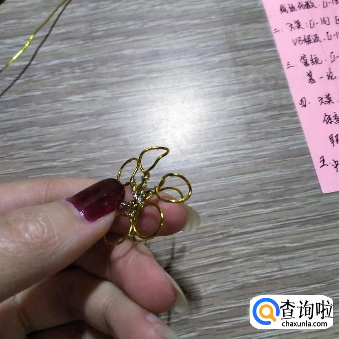 在重复刚刚的操作,再绕一个圈,第二个圈接着第一个圈后面绕,如下图2所示,绕好后将中信笔取出,调整两个小圈的位置,做好后如下图一,然后重复刚刚的操作,做成六个圈,如下图3所示,然后我们将六个村的位置调整到同一平面上