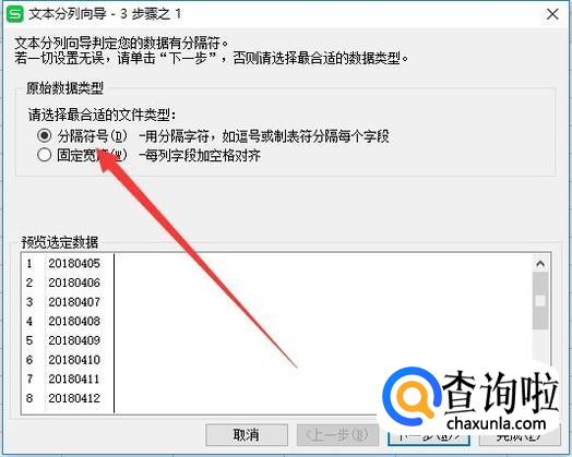 进入之后,选择“分隔符号”,点击“下一步”,如图所示。