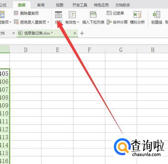 进入之后,点击“分列”进入下一页面,如图所示。