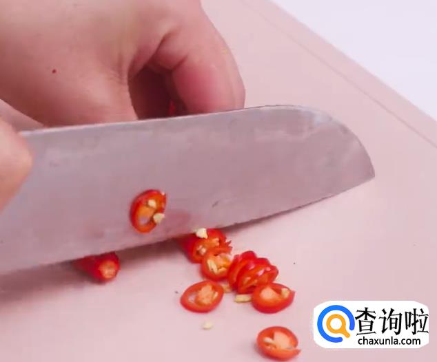 之后把小米椒切圈。如图所示。