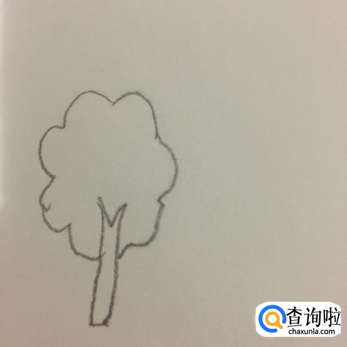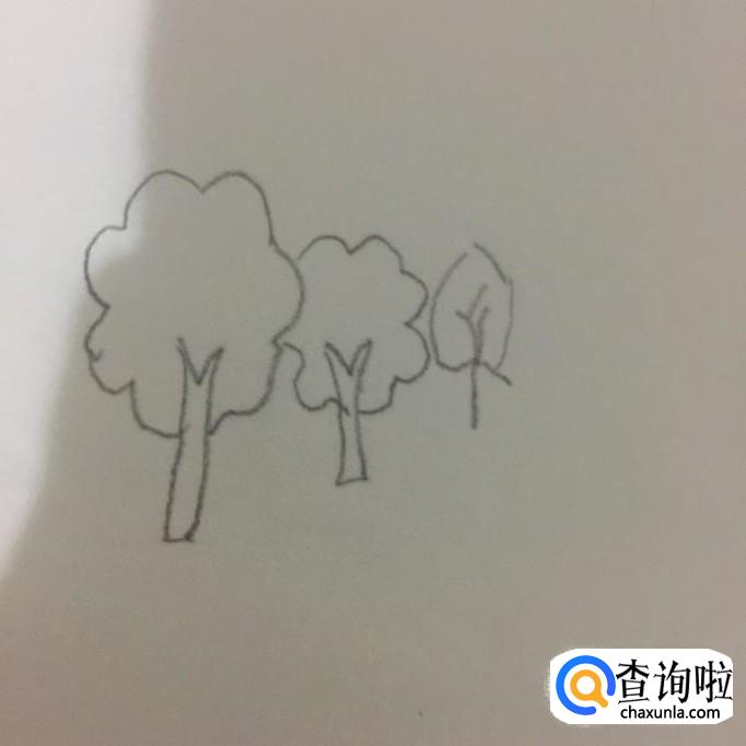 然后在这棵树旁画出两棵小树,如下图所示。我们在画这一步的时候,需要注意的是画的树要越来越小会比较好。