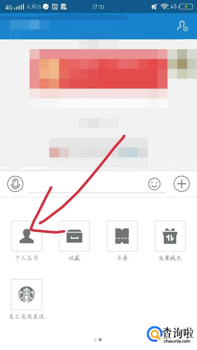 会出现一个新的界面,如图1所示。向右滑动手机,点击“个人名片”选项,如图2箭头所示。选择要推的联系人就可以了。