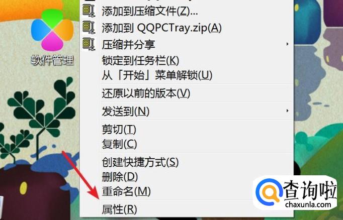 右键点击有问题的软件,在右键菜单上点击‘属性’