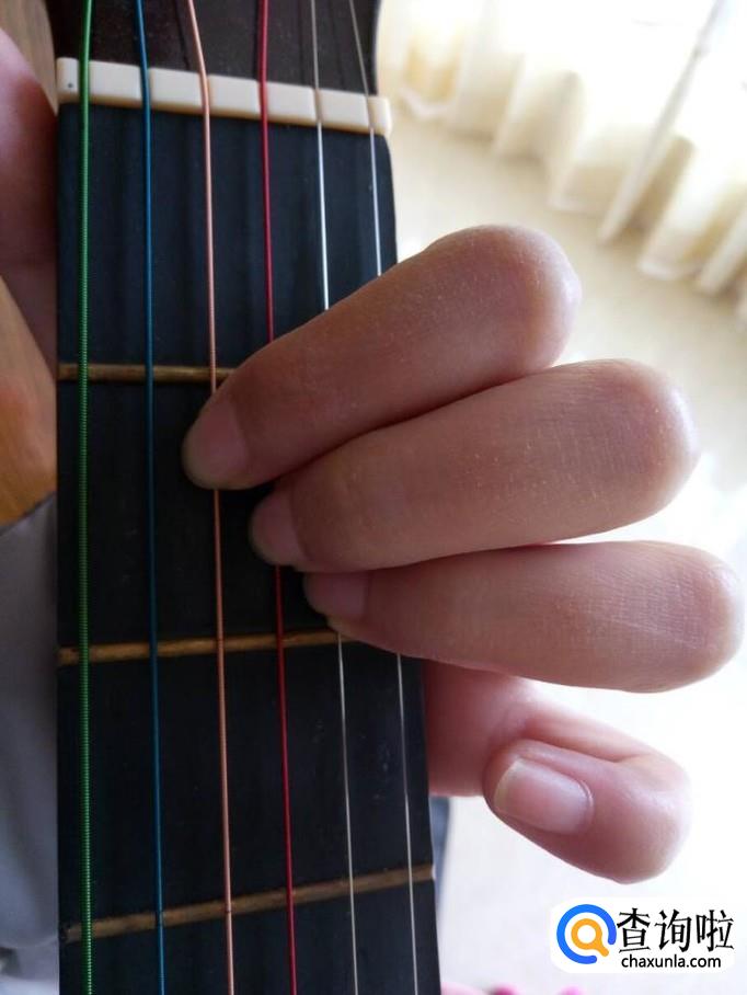 左手按弦的示范动作就是这样,手指对应几弦一定要按正确,注意不要折指,保持垂直。