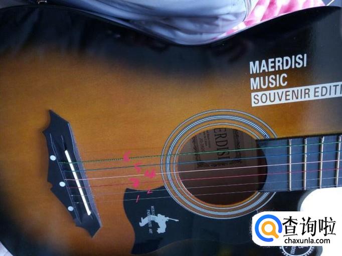 下图红色标注的就是吉他的654321弦,拨弦的时候注意力度。