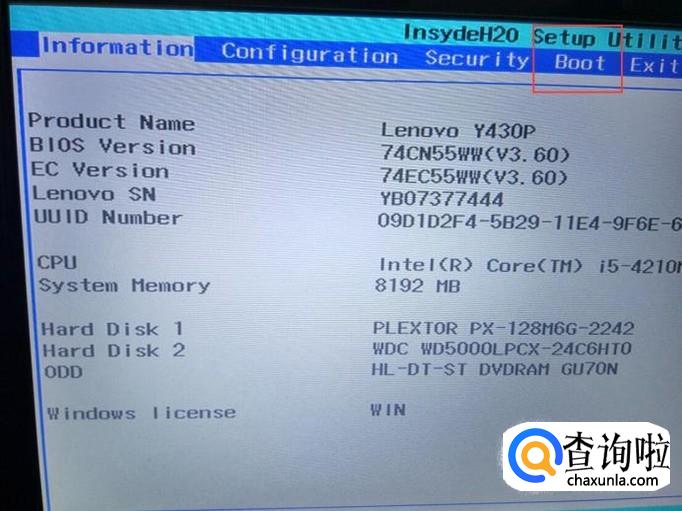 这里以Lenovo电脑为例,电脑开机时按下F2键,进入主板BIOS设置页面,将页面切换至“Boot”菜单选项。