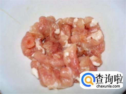 买一点瘦猪肉,清洗干净之后切成很薄很薄的猪肉片,加上一点料酒、生抽、食盐和蚝油腌制十几分钟。