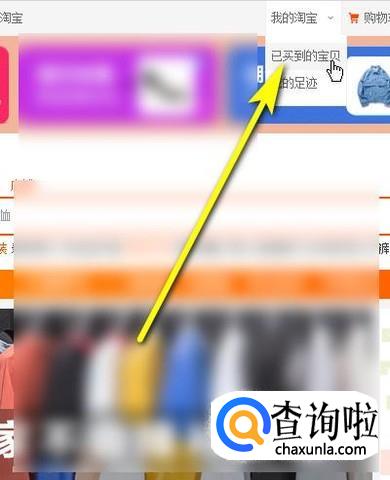 弹出下拉菜单,再点:已买到的宝贝。