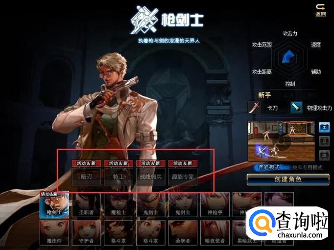 首先我们要知道,枪剑士可以转职为四个职业,分别叫做暗刃,特工,战线佣兵和源能专家。