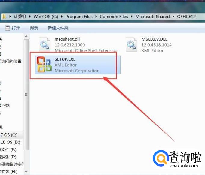 接下来,在Microsoft Shared文件夹中找到命名为OFFICE12的文件夹。