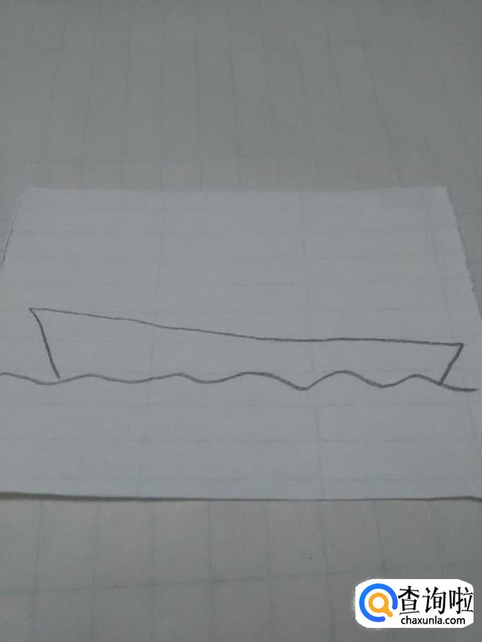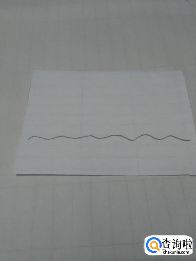 先用笔在纸上画一条波浪形曲线,表示大海的海面。