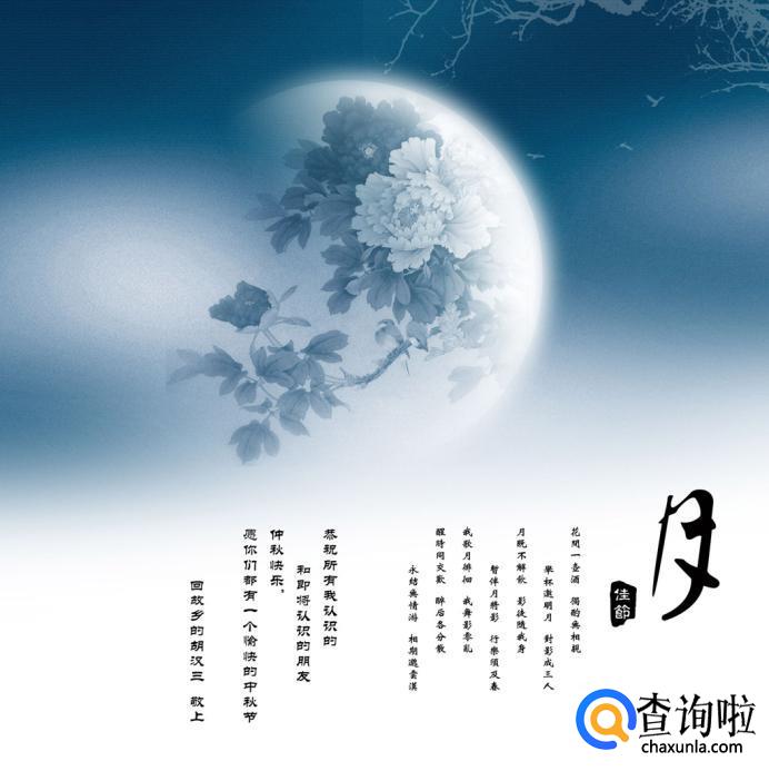 千里试问平安否?且把思念遥相寄。绵绵爱意与关怀,浓浓情意与祝福,中秋快乐!