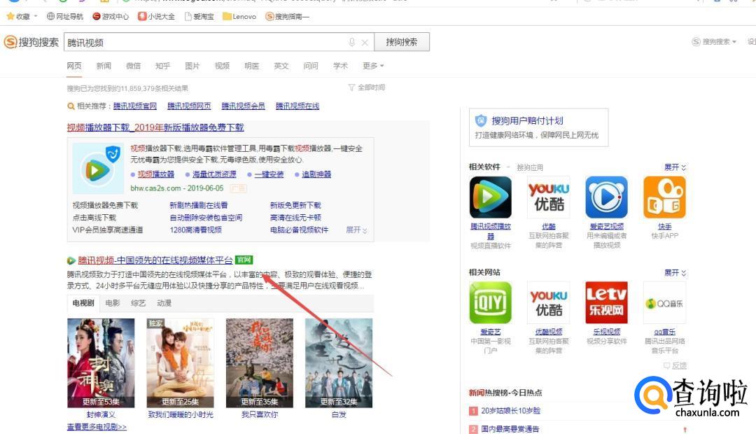 首先,我们打开搜狗高速浏览器搜索腾讯视频,点击进入腾讯视频官网。