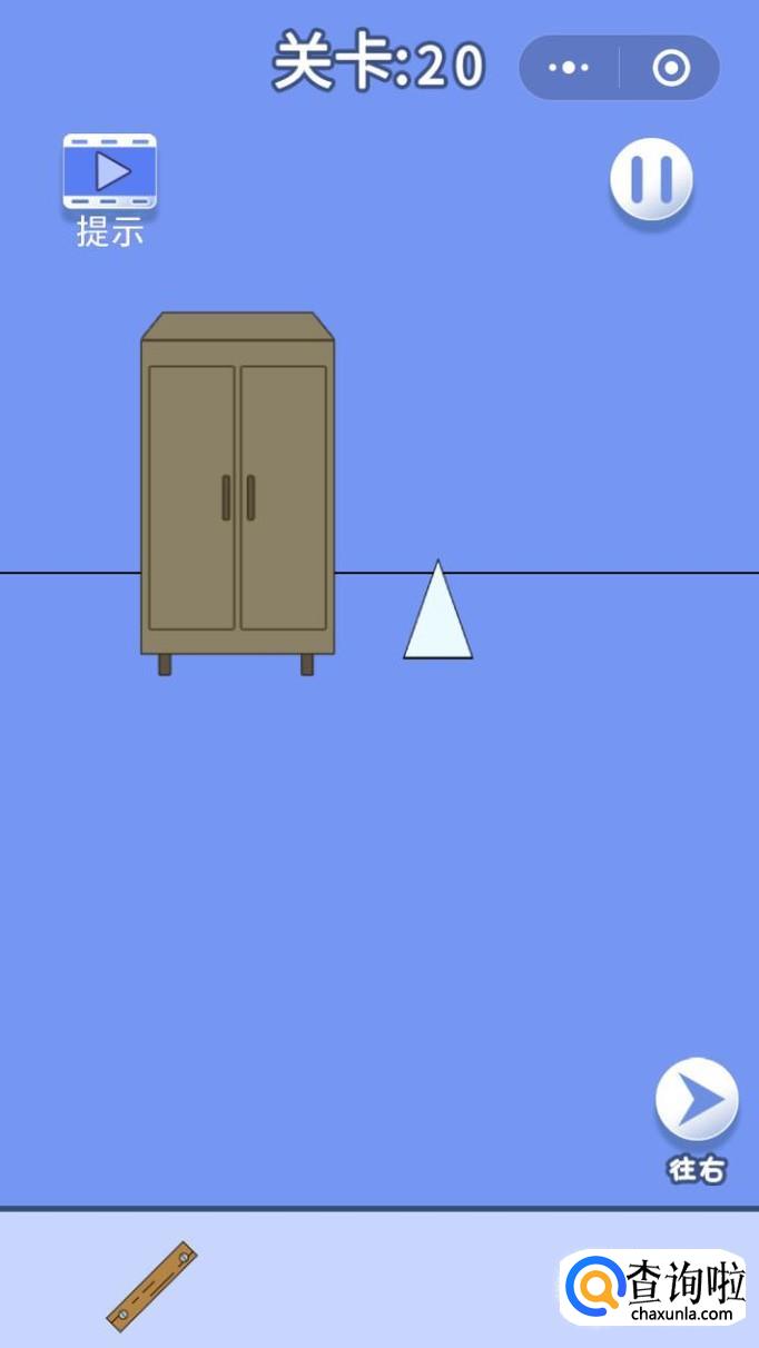 翘开木板后,我们拖动三角形到柜子旁边。