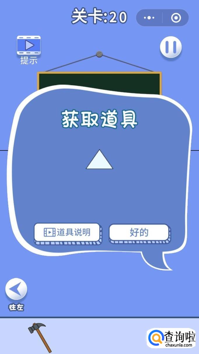 搜集完锤子后,在点击黑板上白色的三角形搜集。
