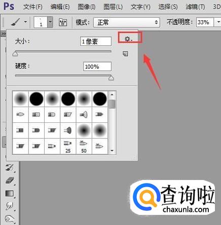 点击画笔选项在属性里找到画笔设置选项,如图所示: