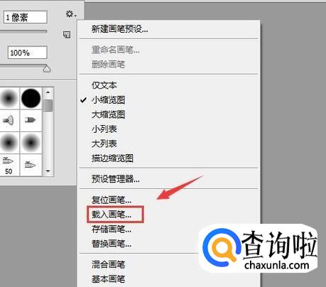 点击画笔设置选项在其下拉菜单那里找到载入画笔选项,如图所示: