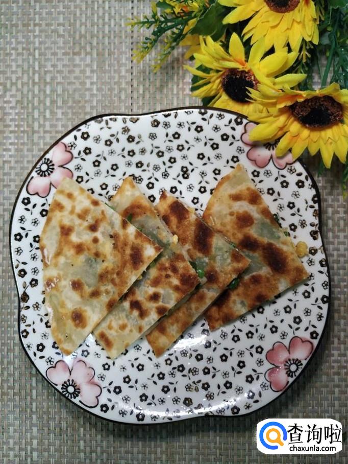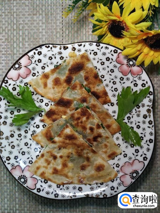出锅装盘,还可以用刀切成扇形,分成几份,拿在手中吃,更加美味,家里人都非常喜欢。