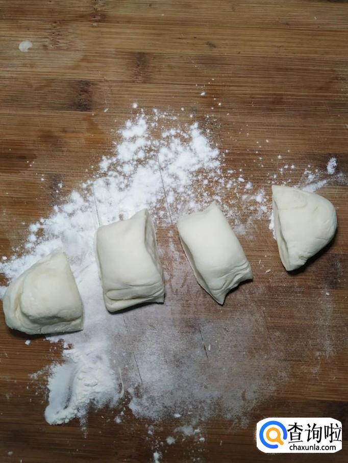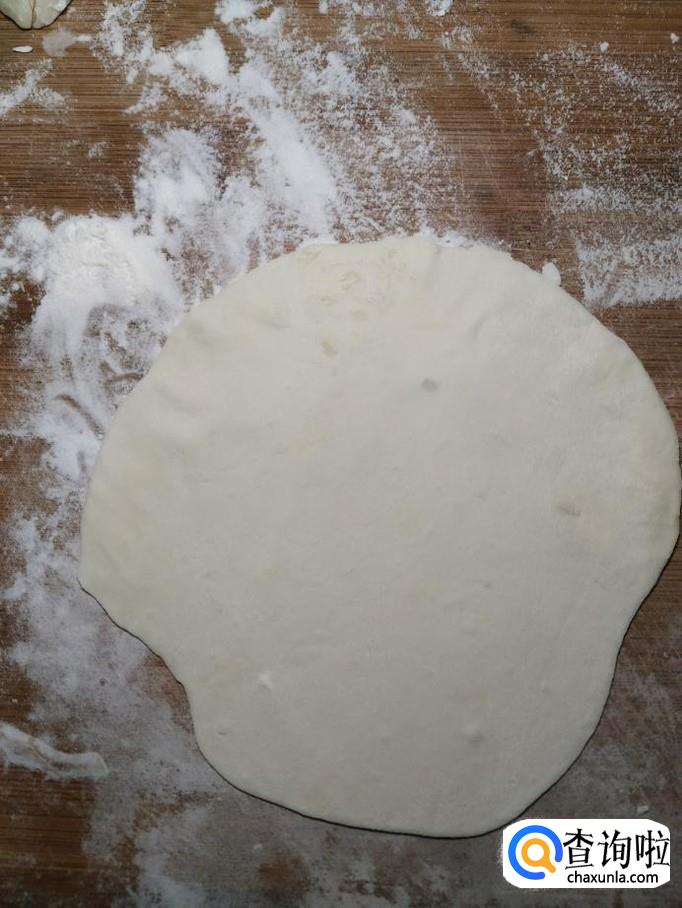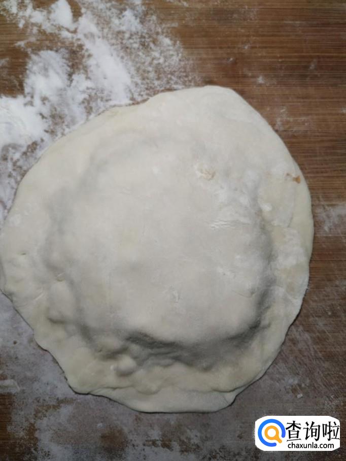 将揉好的面,分成小剂子,然后擀成薄片,面片儿可以擀得稍微薄一些,大一些。做出两张薄面片备用。