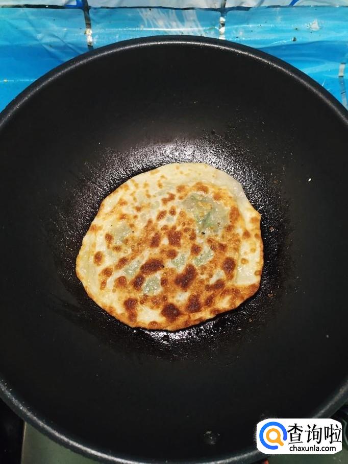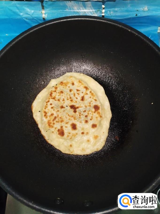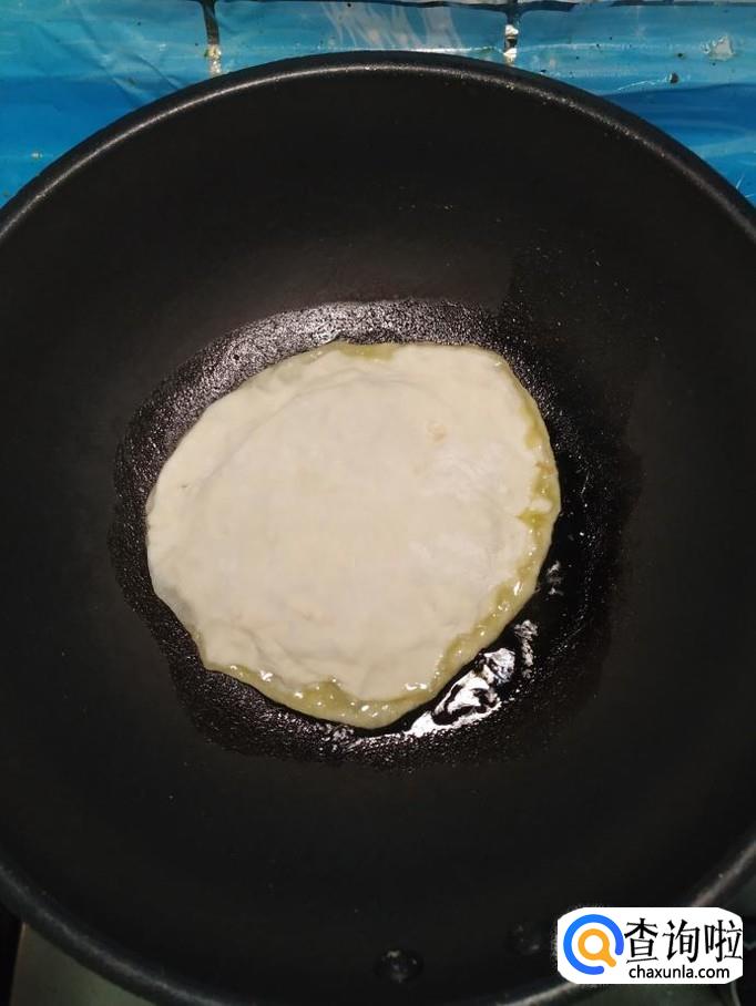 平底锅放入适量油,油热后,将做好的饼放入锅中,小火慢煎。
