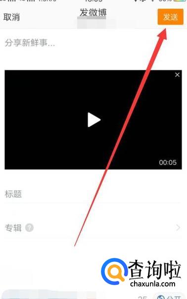 进入下一页面之后,为视频起好标题,编辑好内容之后,点击“发送”即可。