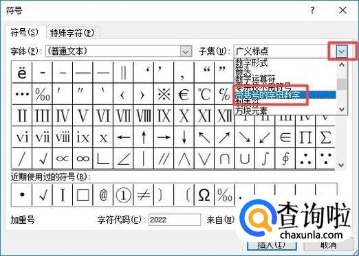 弹出的界面,我们点击子集边上的下拉箭头,弹出的界面,我们点击带括号的字母数字;