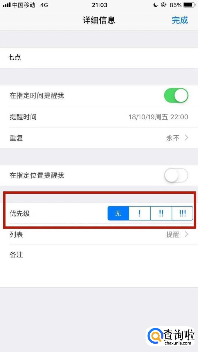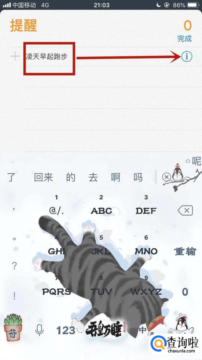 接着输入你要提醒的事项,并点击右侧的感叹号,如下图所示。