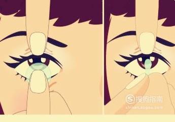 右手的中指将下眼睑拉开,用食指将镜片轻轻放在眼睛内部,按照同样的方法佩戴另一只即可。