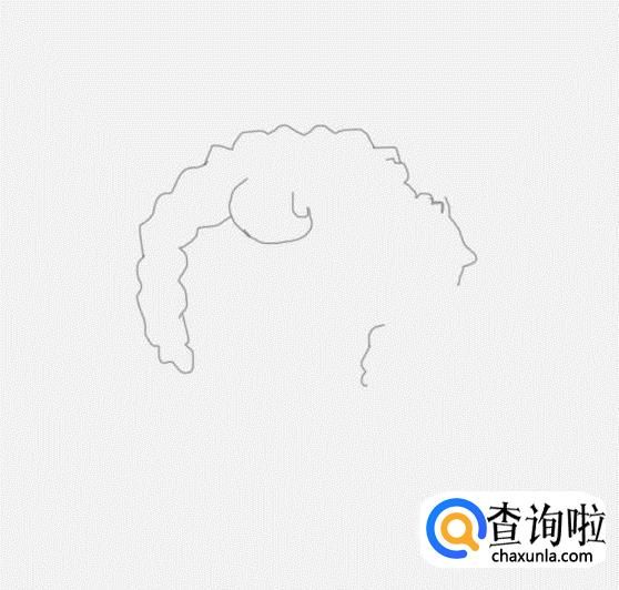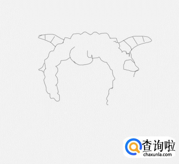 再在头发轮廓上画出喜羊羊的两只耳朵,再在耳朵上面画出喜羊羊的两只羊角,如图所示: