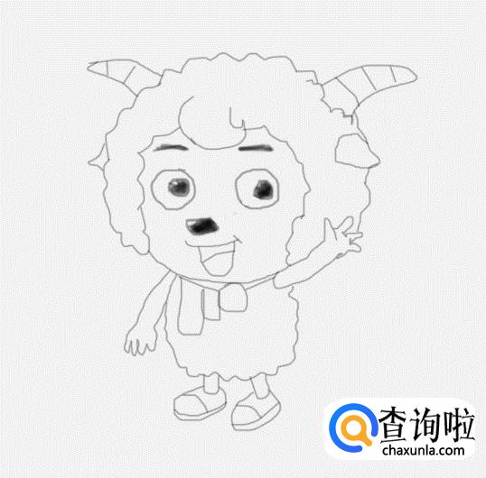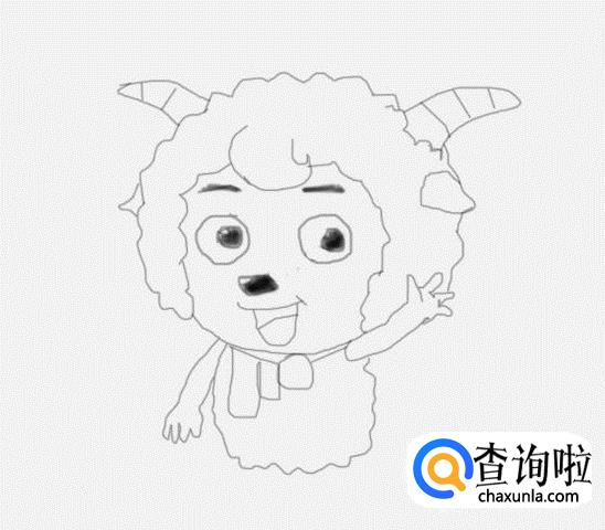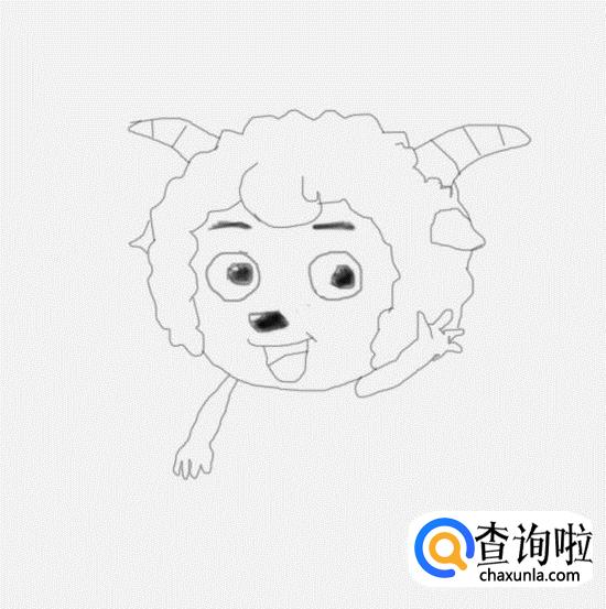 在喜羊羊的头部下面画出喜羊羊的两只胳膊及手部,如图所示: