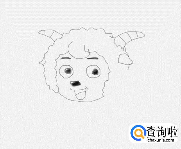 再画出喜羊羊的面部,并在面部上画出喜羊羊的眉毛,在眉毛下面画出喜羊羊的两只眼睛,再在眼睛下面画出喜羊羊的鼻子,并在鼻子下面画出喜羊羊的嘴巴,如图所示: