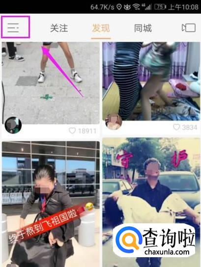 来到了首页,我们点击左上方的三白条,点击下,如图所示。