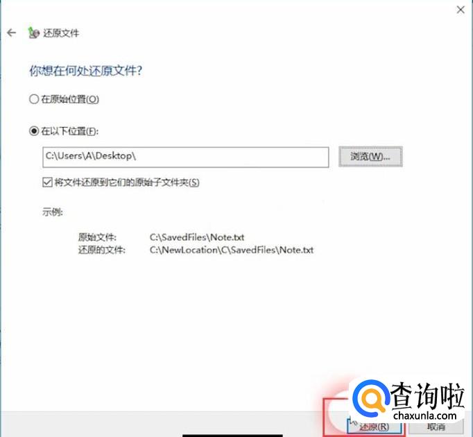 点击还原我的文件,浏览文件,选中后点击下一步,设置还原位置,然后点击还原,还原成功即可。