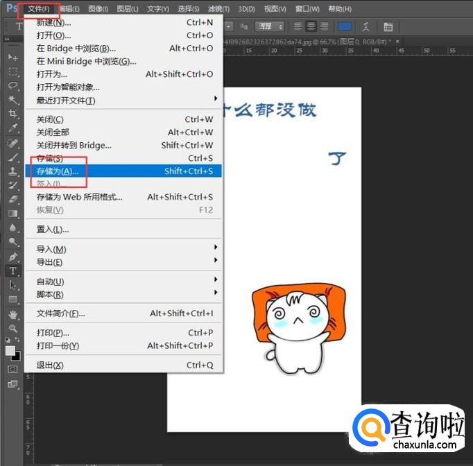 内容添加完成后,点击菜单栏的“文件”,在下拉菜单中选中“存储为”,把图片保存为“png”格式,如此,一张手机壁纸就制作完成了。