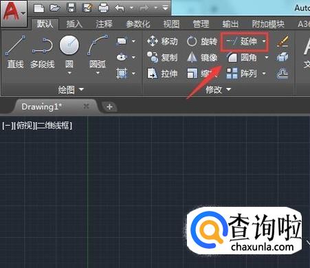 绘制好线之后在修改选项内找到延伸选项,如图所示: