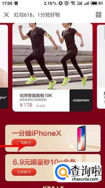 进入活动界面,在下方能够看到“一分抽IPHONE X”的活动图片,点击“立即参与”
