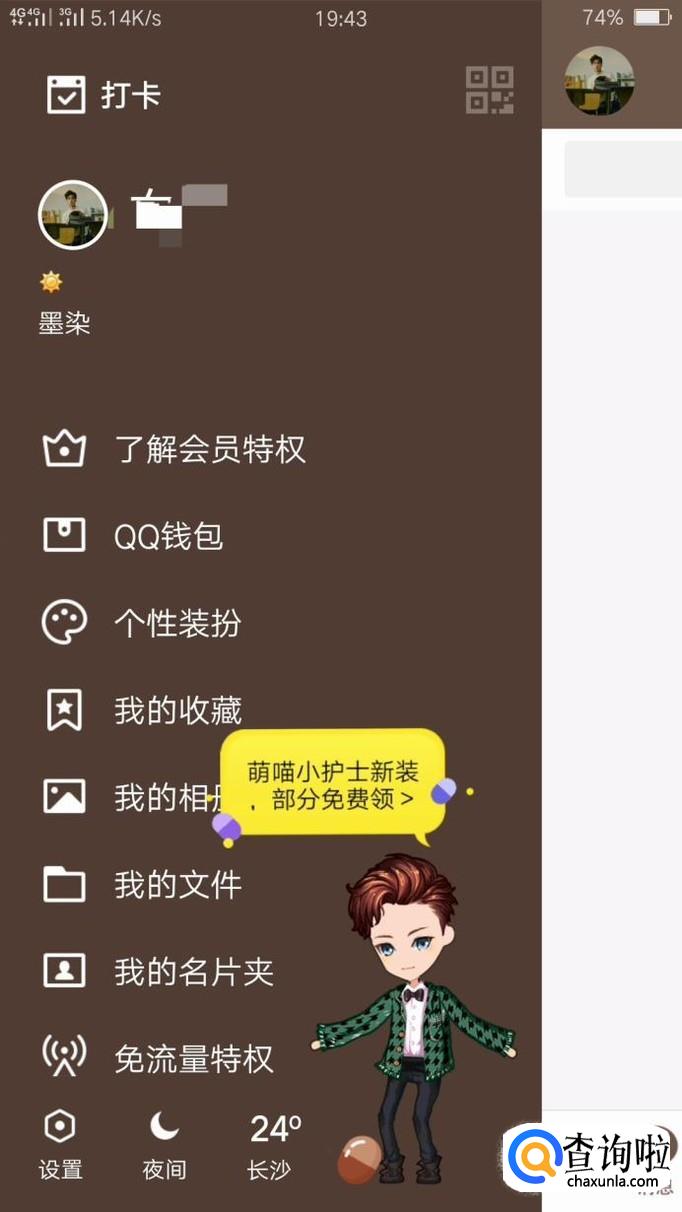 首先进入QQ,然后点击左上角的头像,进入QQ的详细界面,接着点击设置进入下一界面。