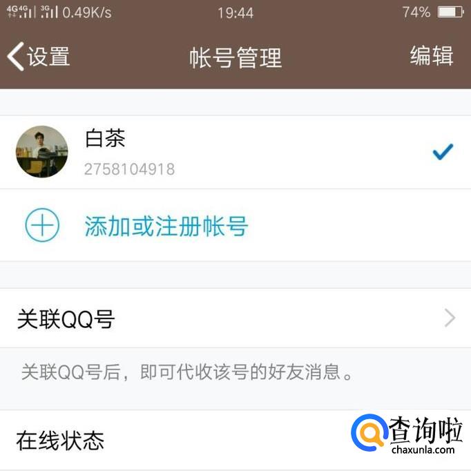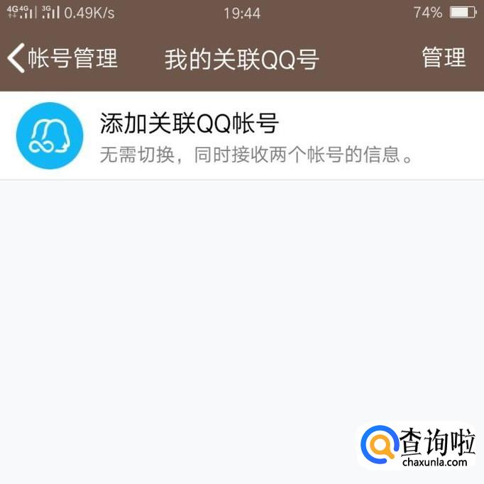 在账号管理里面,就有关于QQ关联的设置,直接点击“关联QQ号”,就可以进行QQ关联了。
