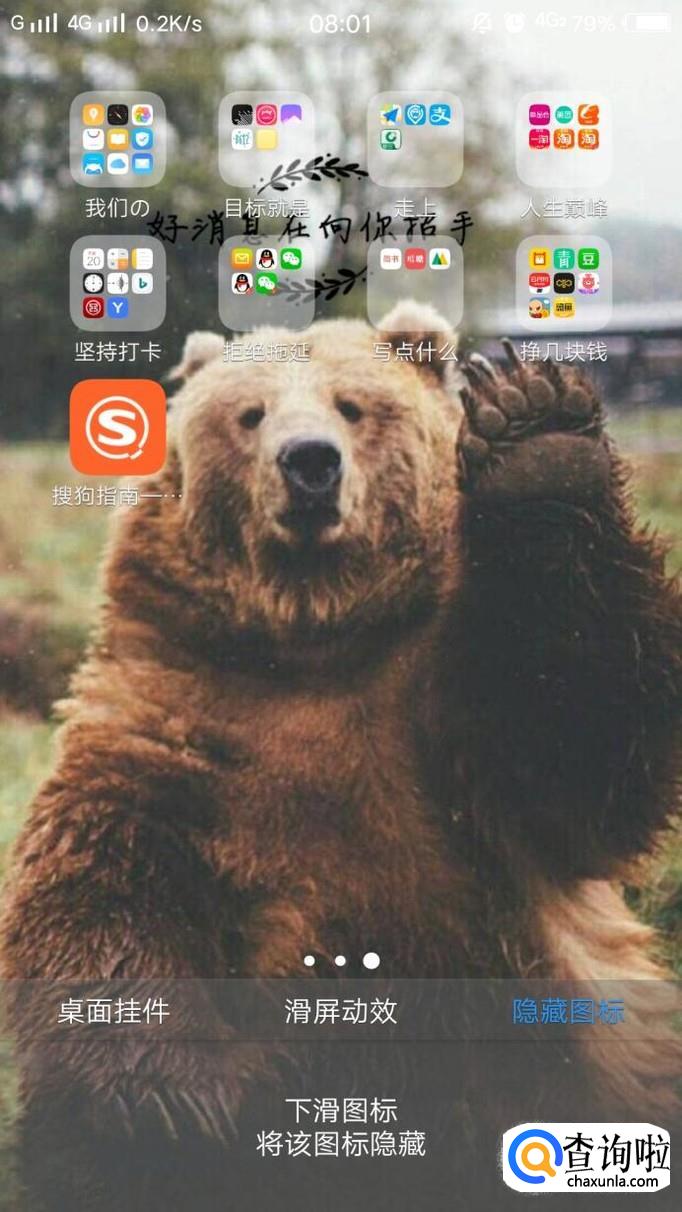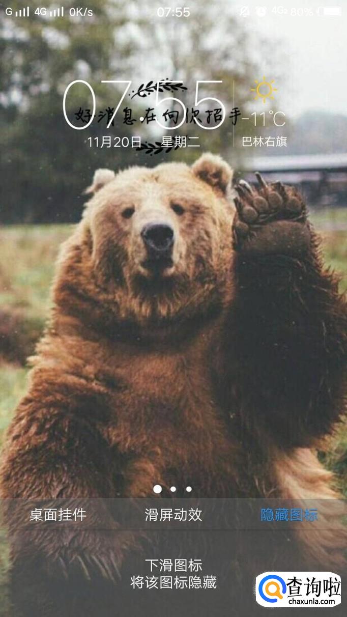 如下图所示,轻轻下滑,就可以实现隐藏图标,如果还有想要隐藏的图标,重复以上步骤即可完成。