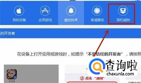 接着,点击屏幕右上方的刷机越狱,如下图所示。