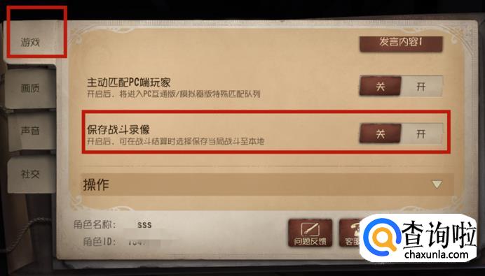 点击进入设置以后,找到“游戏”-“保存战斗录像”-“打开”。见下图。