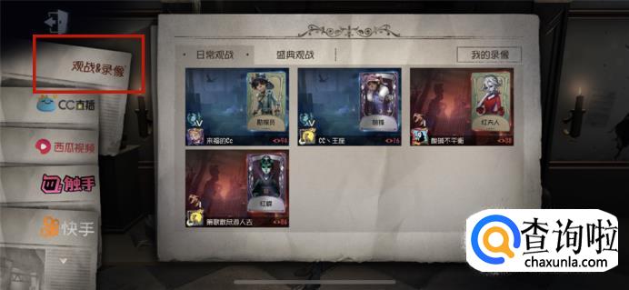 点击进入以后,点击左侧的“观战&录像”按钮。