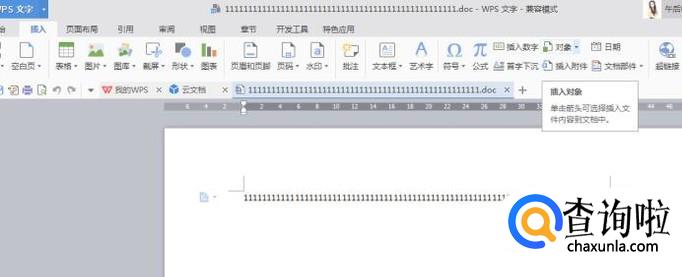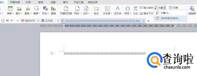 打开任一文档后,选择“插入”-“对象”,点击“对象”选择“文件中的文字”进入。