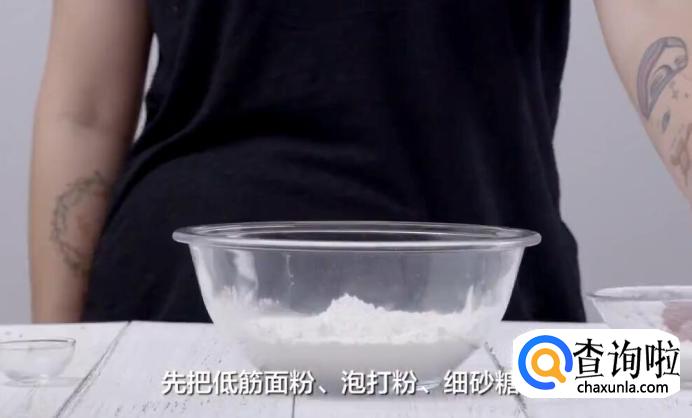 先把低筋面粉、泡打粉、细砂糖混合。