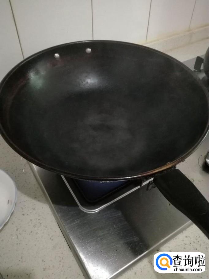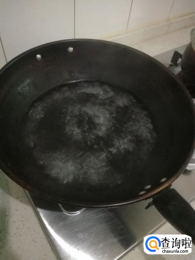 然后往锅里倒入适量清油,烧大火将锅里的油烧滚。