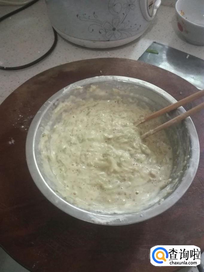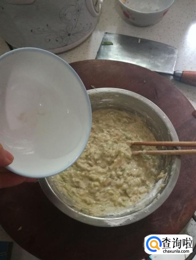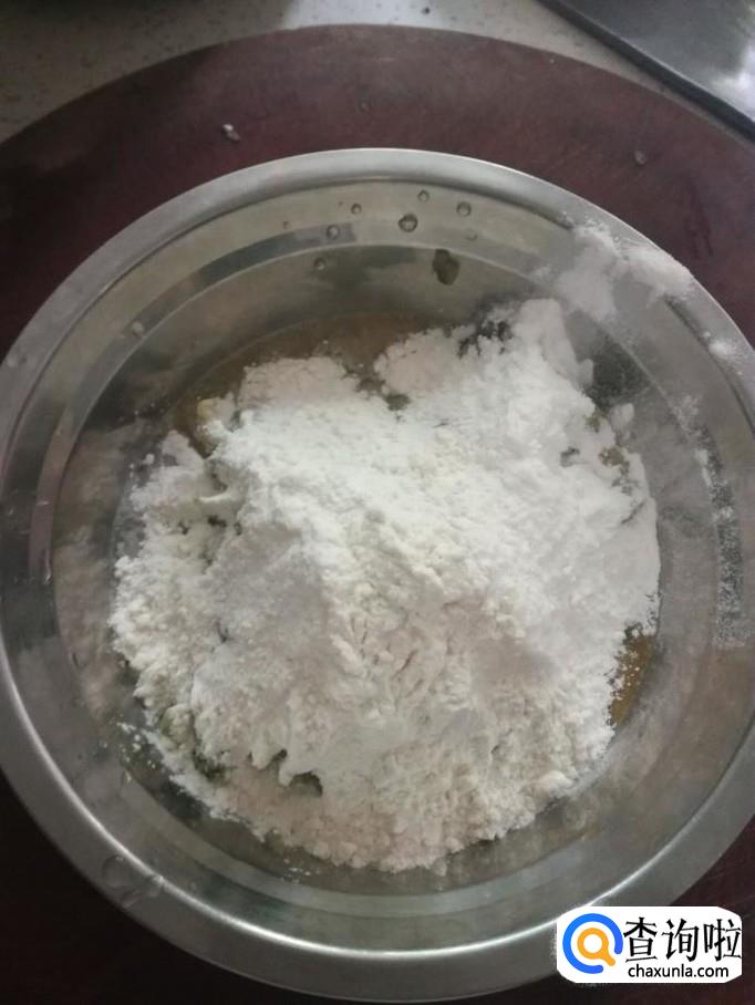 然后往碗里加入适量的小麦粉,然后用筷子搅匀。